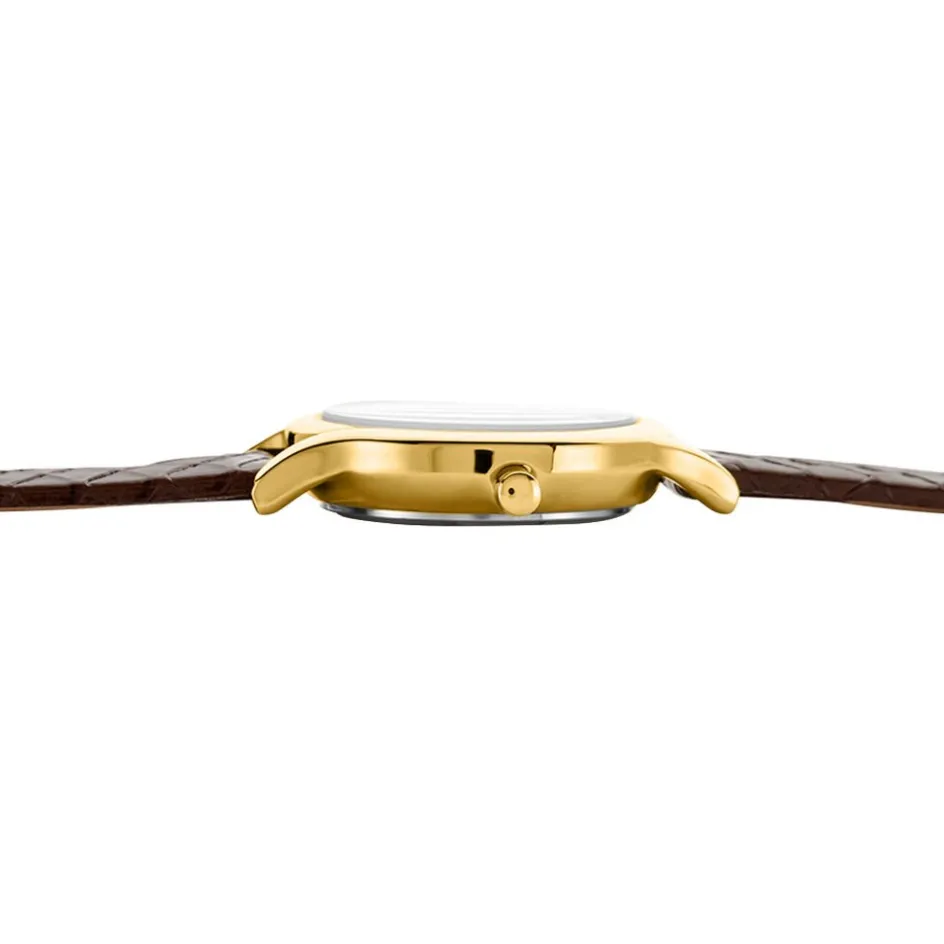 Montre O Watch Tiny Alliage Doré Ronde Quartz 26.5mm Fond Blanc Bracelet Synthétique Marron P100851-aj