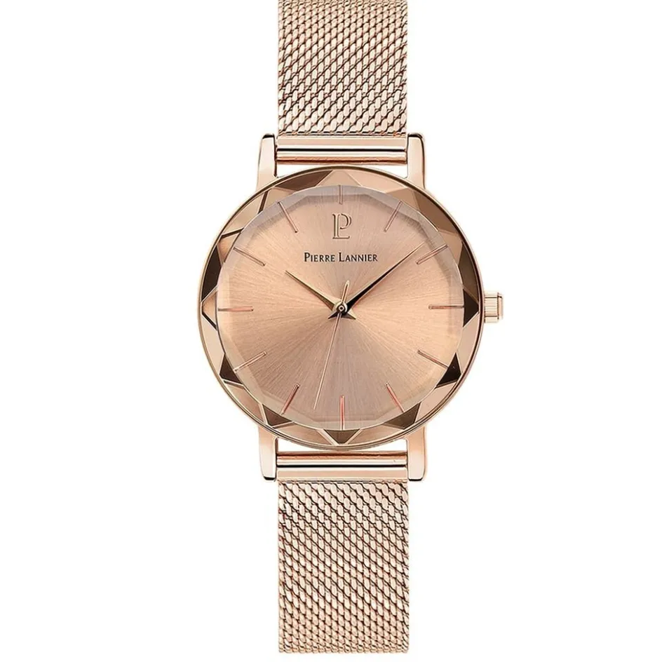 Montre Pierre Lannier Multiples Acier Dore Ronde Quartz 30mm Fond Rose Bracelet Acier Rose 010p958