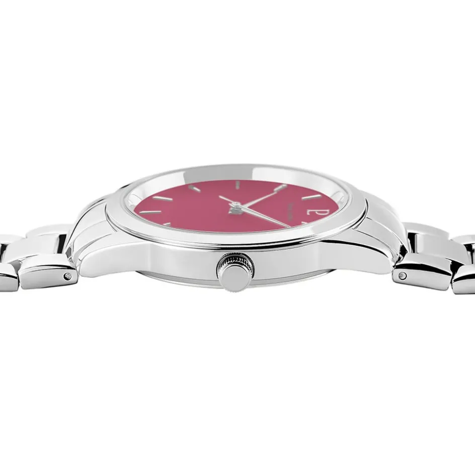 Montre Pierre Lannier Roxane Acier Argenté Rond Quartz 35.5mm Fond Fuschia Bracelet Acier Argenté 066m651