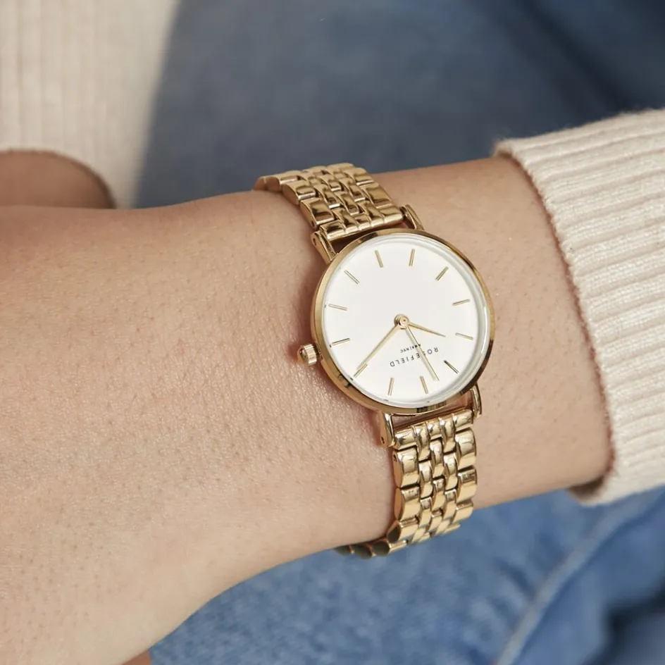 Montre Rosefield Small Edit Acier Doré Ronde Quartz 26mm Fond Blanc Bracelet Acier Doré 26wsg-267