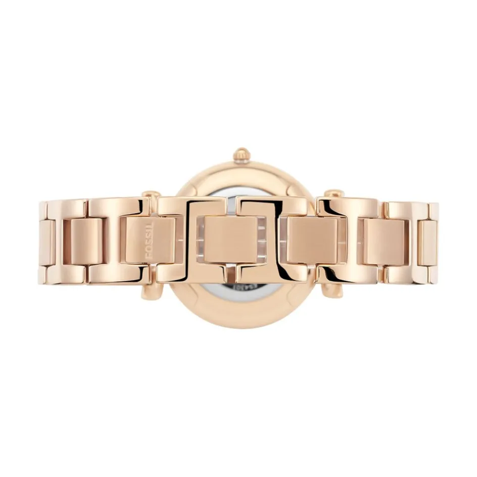 Montre Fossil Carlie Acier Dore Ronde Quartz 35mm Lunette Strass Fond Rose Bracelet Acier Rose Es4301