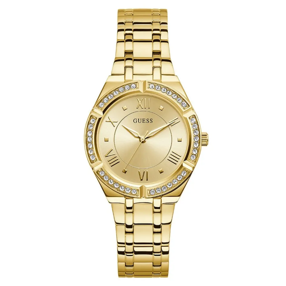 Montre Guess Cosmo Acier Dore Ronde Quartz 36mm Fond Dore Bracelet Acier Dore Gw0033l2