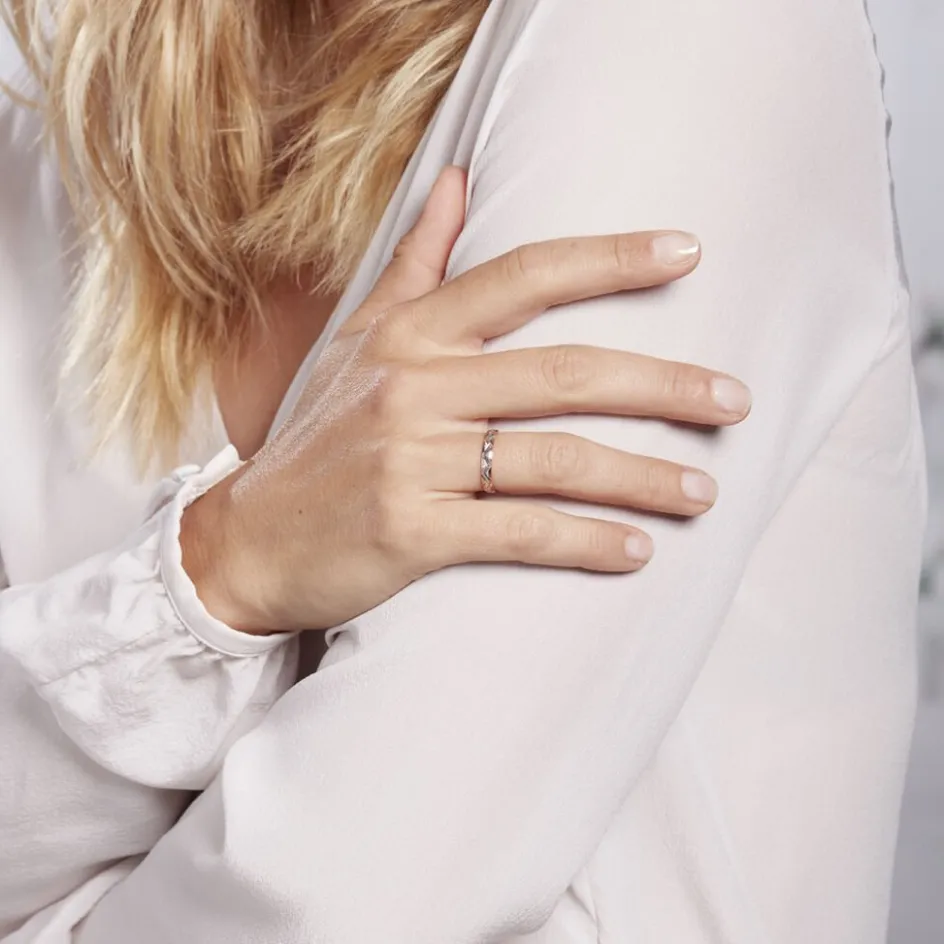 Alliance Or Bicolore Rose Et Blanc 375/1000 Motifs Vagues Fantaisies 3mm