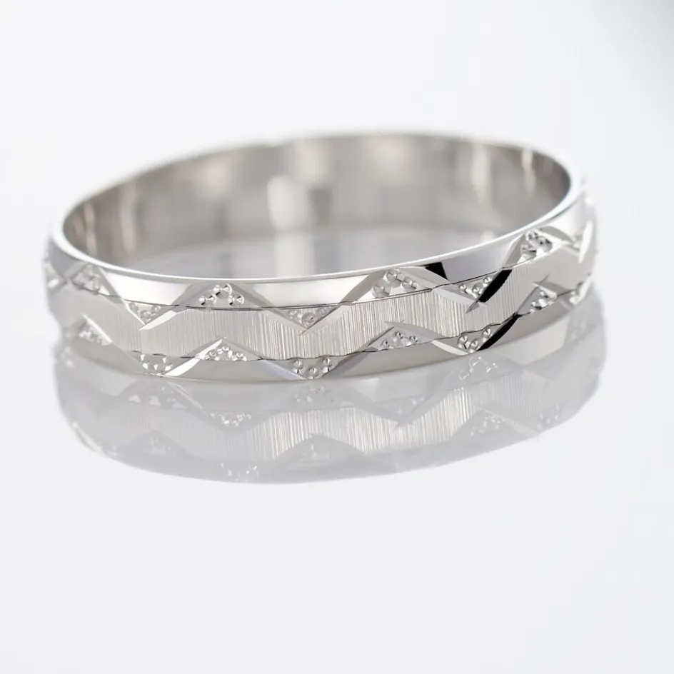 Alliance Or Blanc 375/1000 Fantaisie Motifs Vagues Largeur 4mm