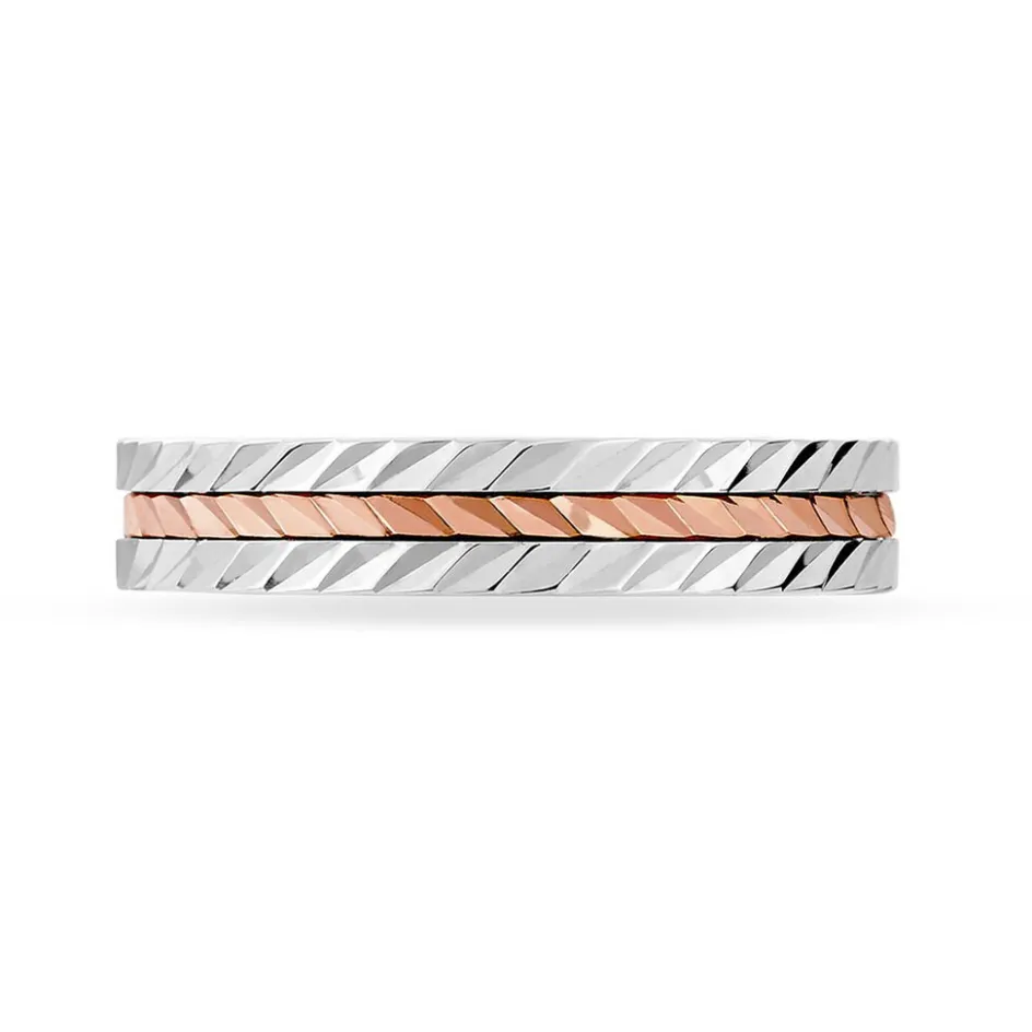 Alliance Or Bicolore Blanc Et Rose 750/1000 Fantaisie 4mm