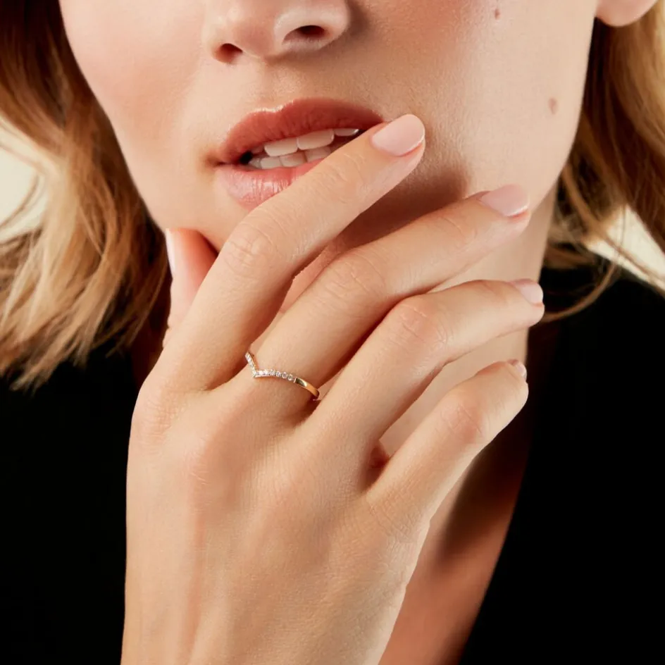 Alliance Or Jaune 375/1000 Aile De Mouette Diamant Synthetique 0,13Cts Micro Serti