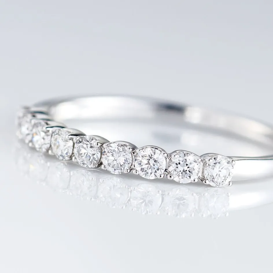 Demi-alliance Or Blanc 750/1000 Diamants Synthétique 0.40cts Sertis Griffes