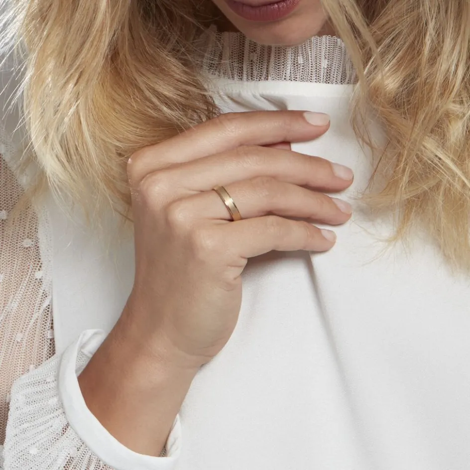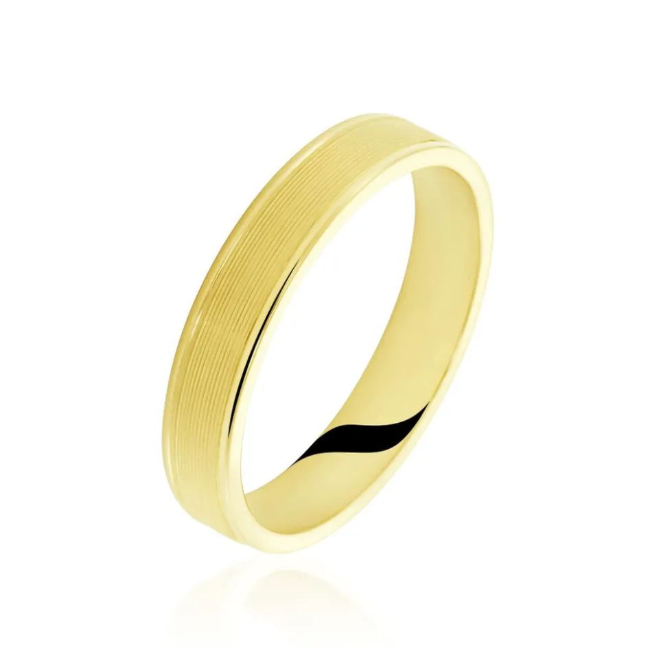 Alliance Or Jaune 375/1000 Mat Et Liseres Brillants Ruban Plat 4mm