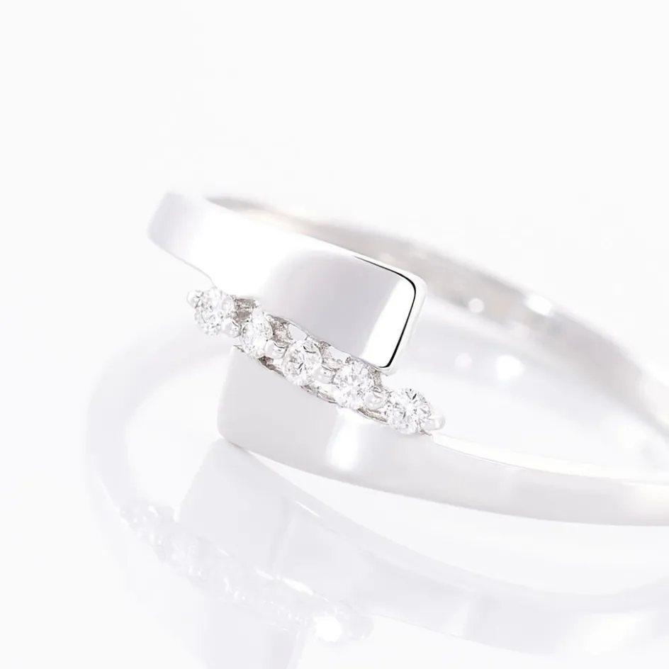 Bague Or Blanc 375/1000 Forme Couteau Barrettes Diamants 0.05cts