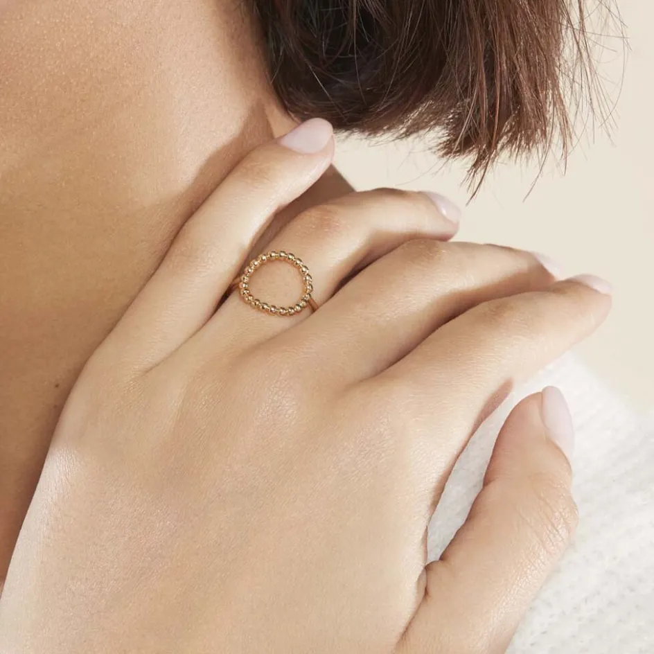 Bague Plaqué Or Jaune Forme Cercle Ajoure Effet Perlé