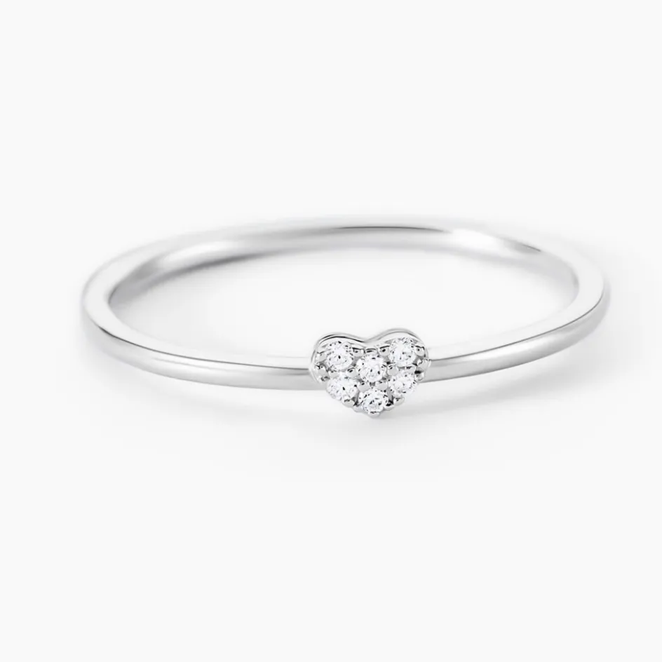 Bague Argent Blanc 925/1000 C艙ur Pavage Oxydes De Zirconium