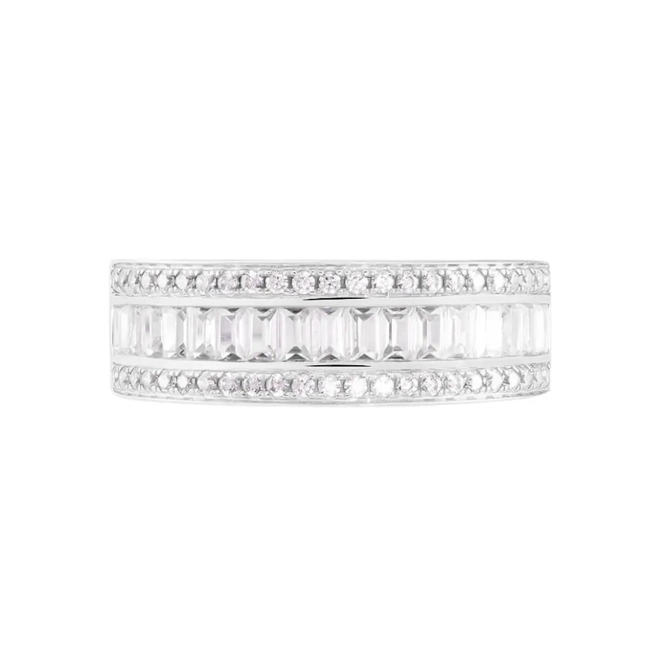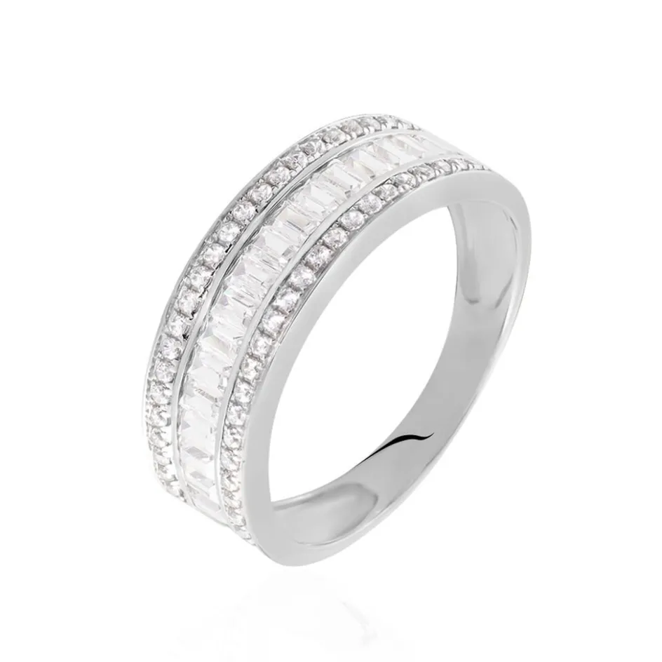 Bague Or Blanc 375/1000 Oxydes De Zirconium Baguettes Accompagnes Oxydes De Zirconium