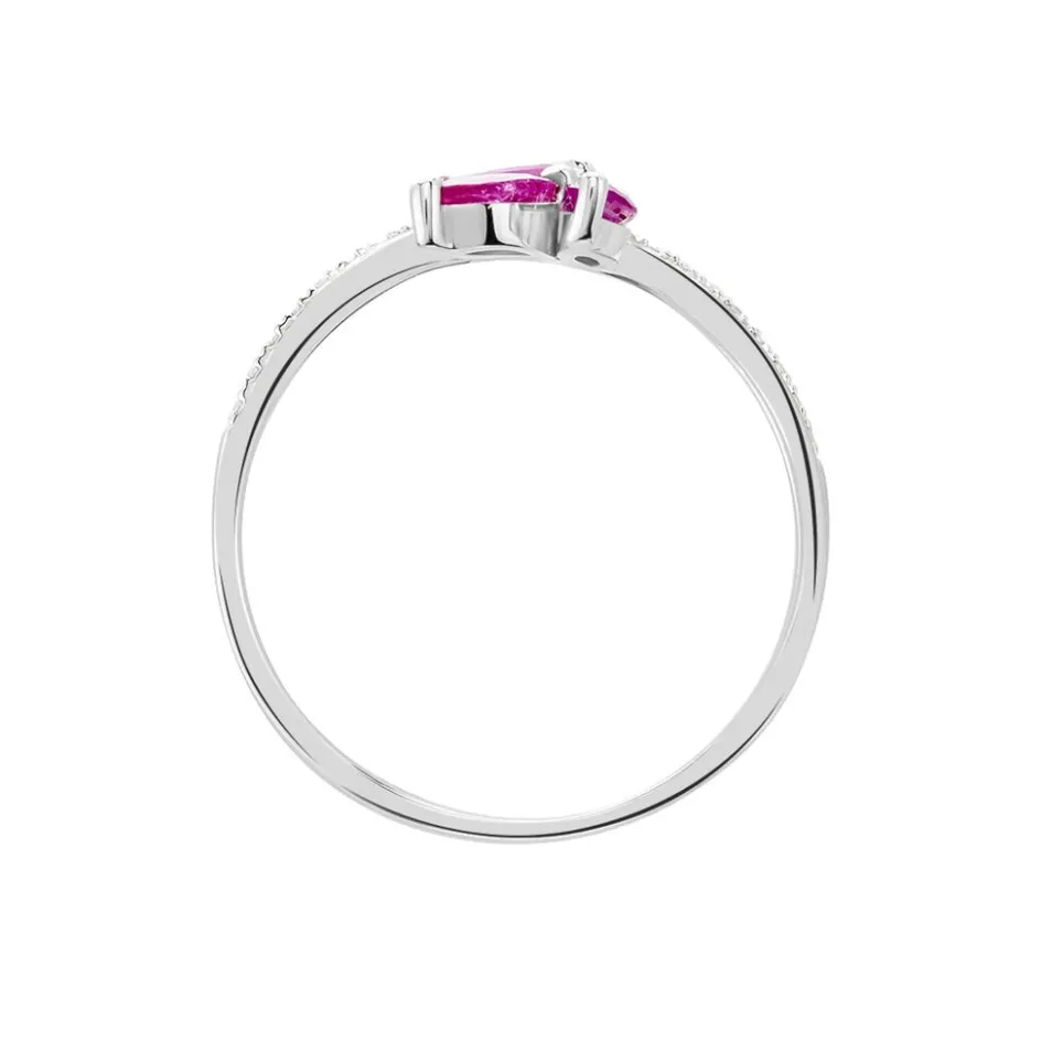 Bague Or Blanc 375/1000 Rubis Forme Navette Diamants Blancs Sur Corps De Bague