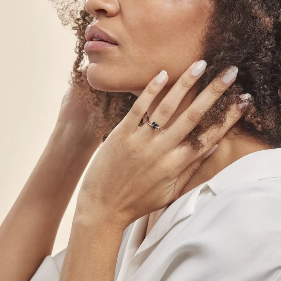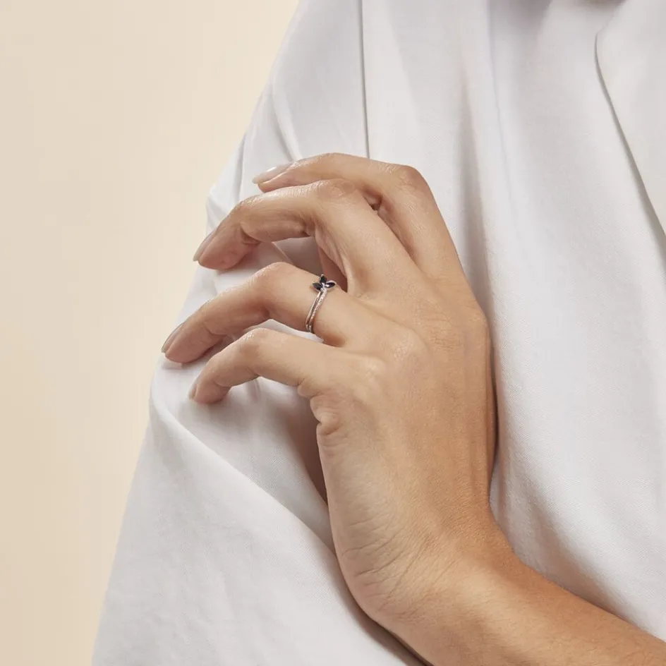 Bague Or Blanc 375/1000 Saphirs Forme Navette Et Diamants Sur Corps De Bague