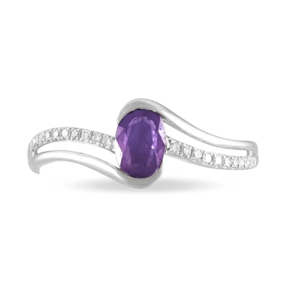 Bague Or Blanc 750/1000 Améthyste Violette Claire Centrale Et Vague Diamants