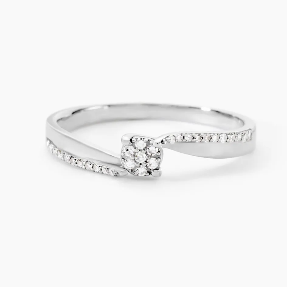 Bague Or Blanc 375/1000 Forme Vrille Multi Pierres Diamants Accompagne
