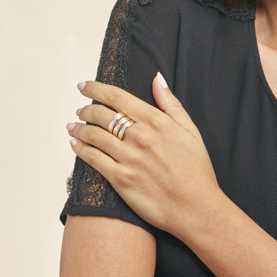 Bague Or Jaune 375/1000 Vagues 3 Rangs Pavage Diamants