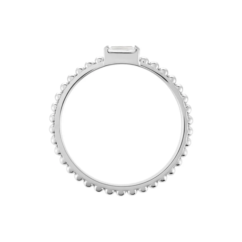 Bague Argent Blanc 925/1000 Effet Perlé Oxyde De Zirconium Rectangulaire