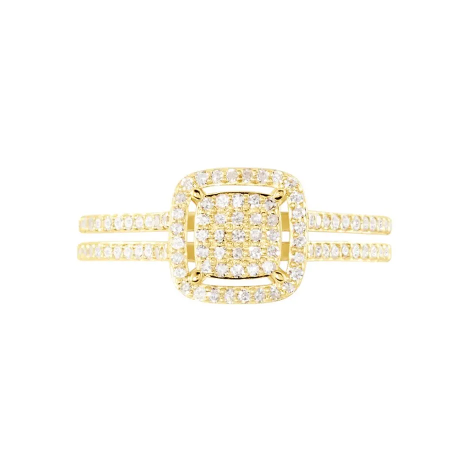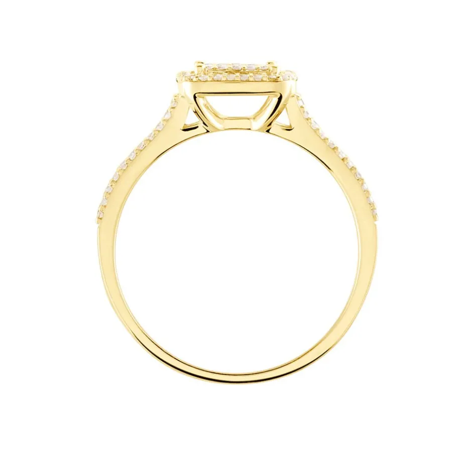 Bague Or Jaune 375/1000 Carré Multipierres Accompagné Diamants 0.271cts Serti Pavage