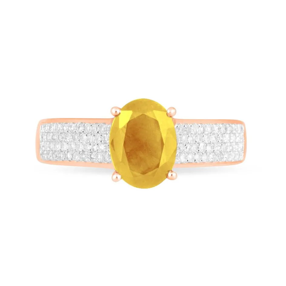 Bague Or Rose 375/1000 Citrine Ovale Accompagnee Diamants Mm