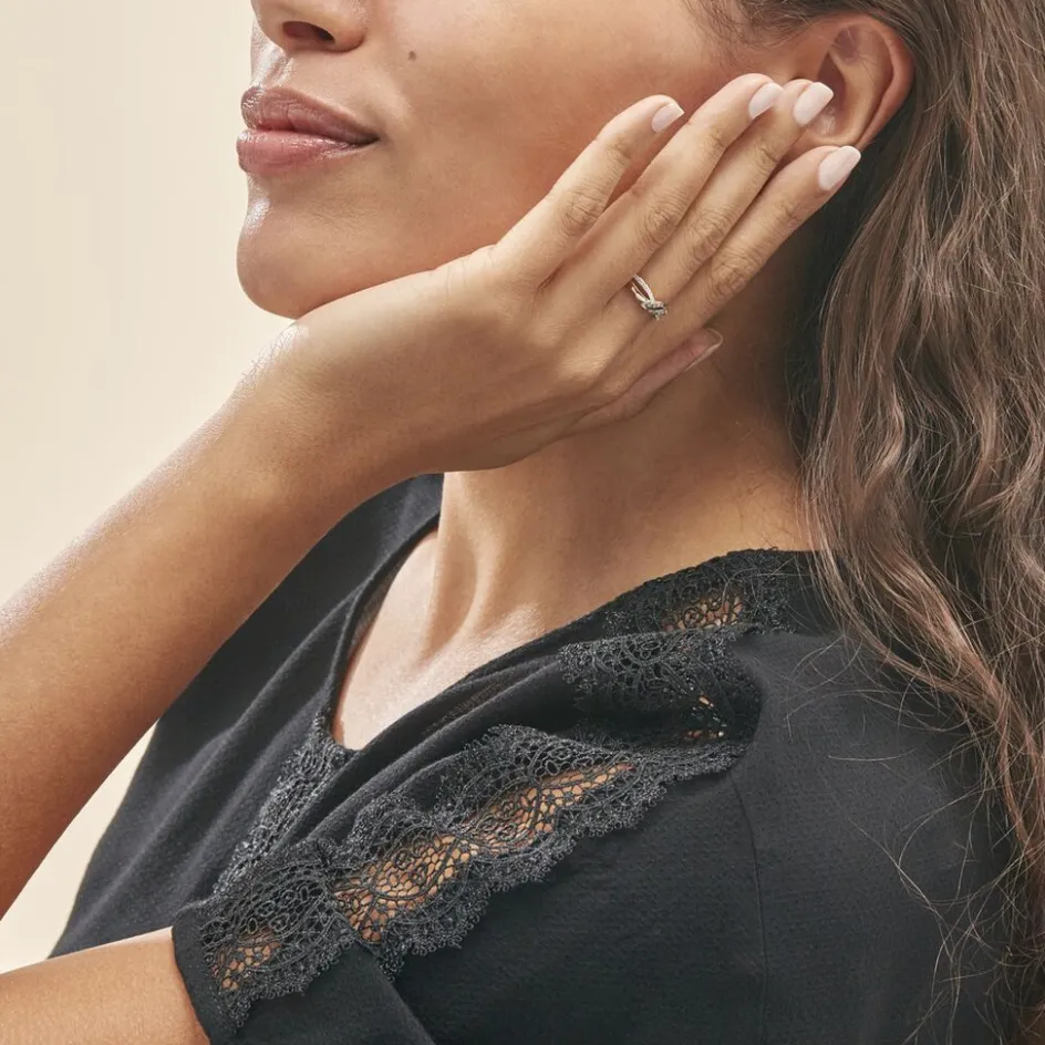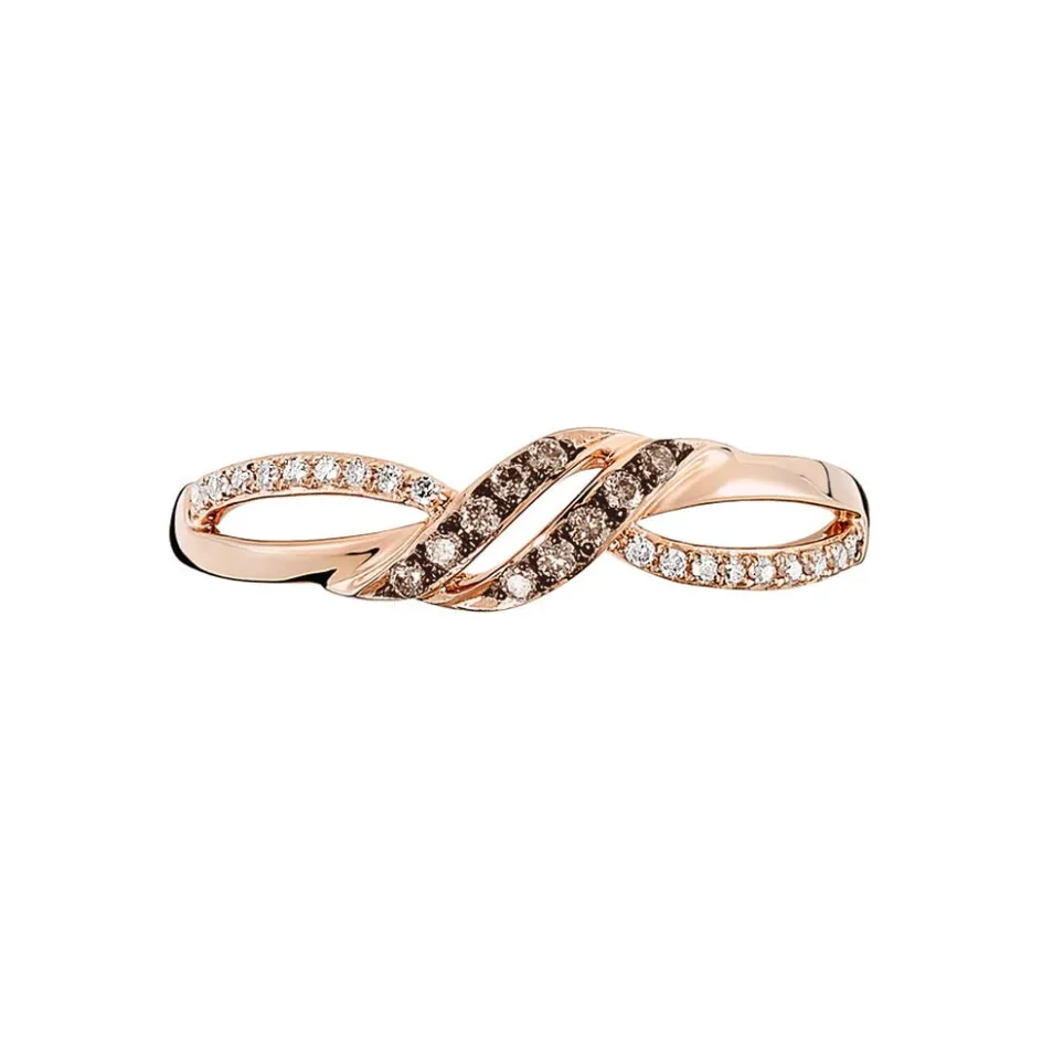 Bague Or Rose 375/1000 Vagues Ajourees Pavage Diamants Blancs Et Diamants Bruns
