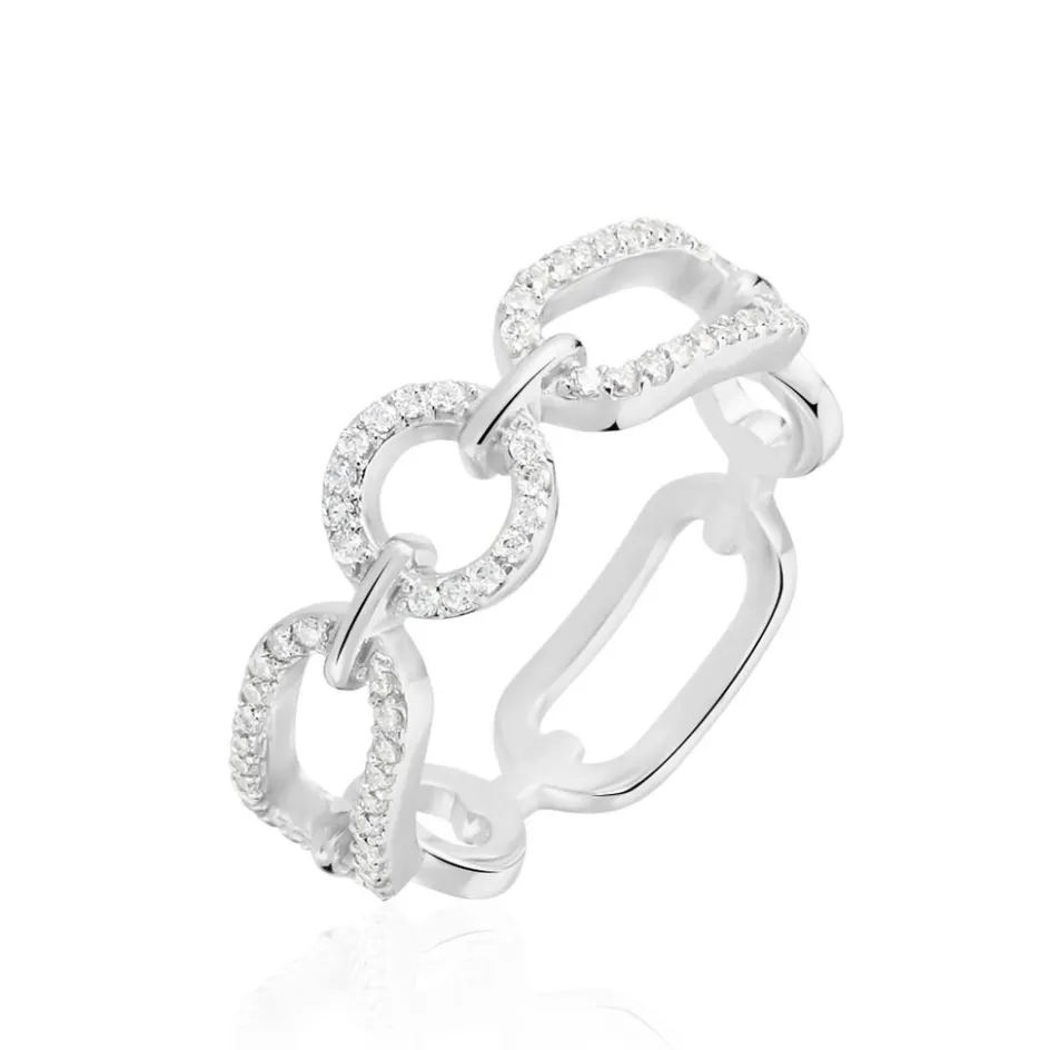 Bague Argent Blanc 925/1000 Motif Maillons Ronds Et Rectangulaires Pavage Oxydes De Zirconium