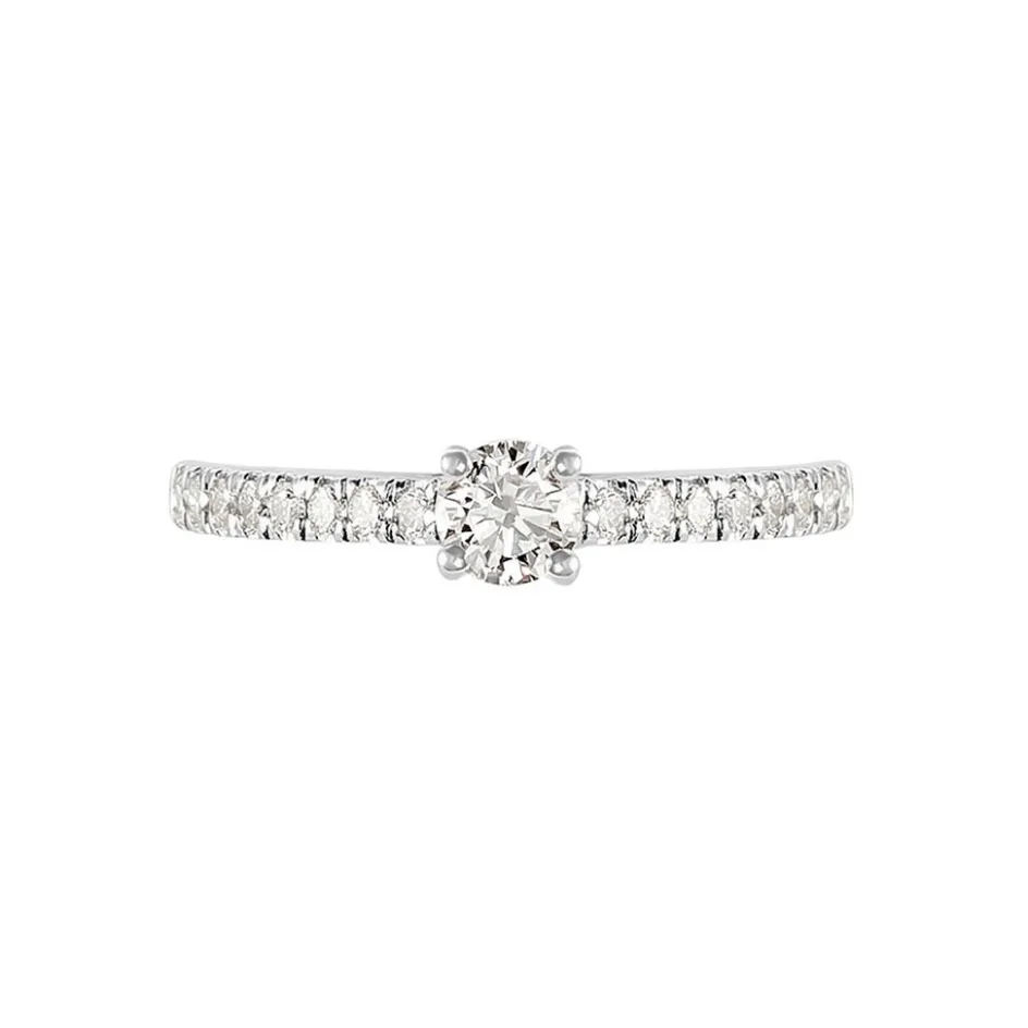 Solitaire Or Blanc 750/1000 Diamant 0.20cts Accompagne Diamants