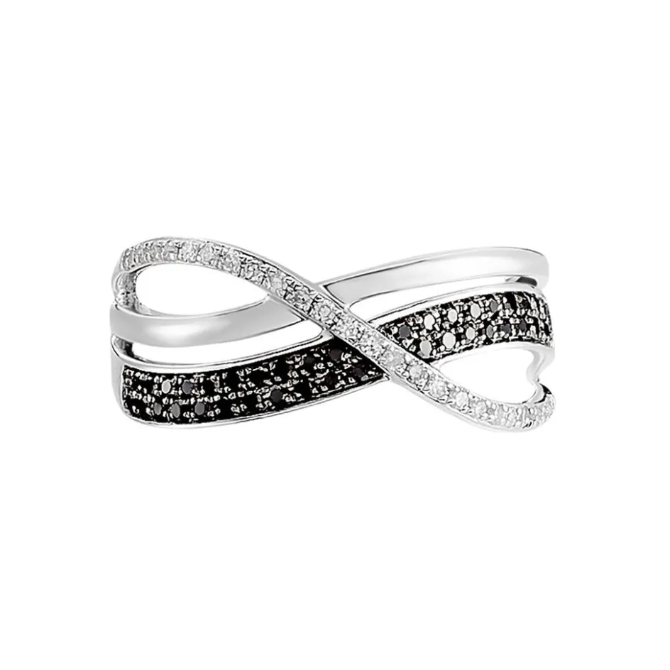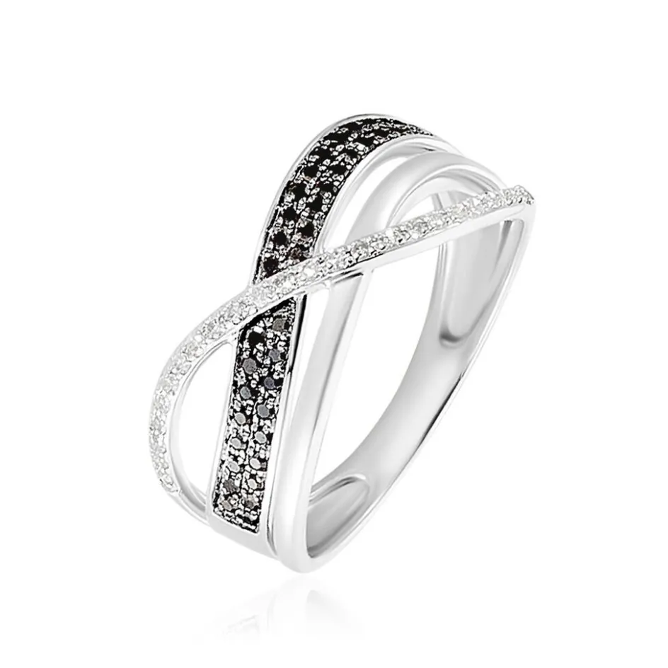 Bague Or Blanc 375/1000 Diamants Blancs Et Noirs Croises