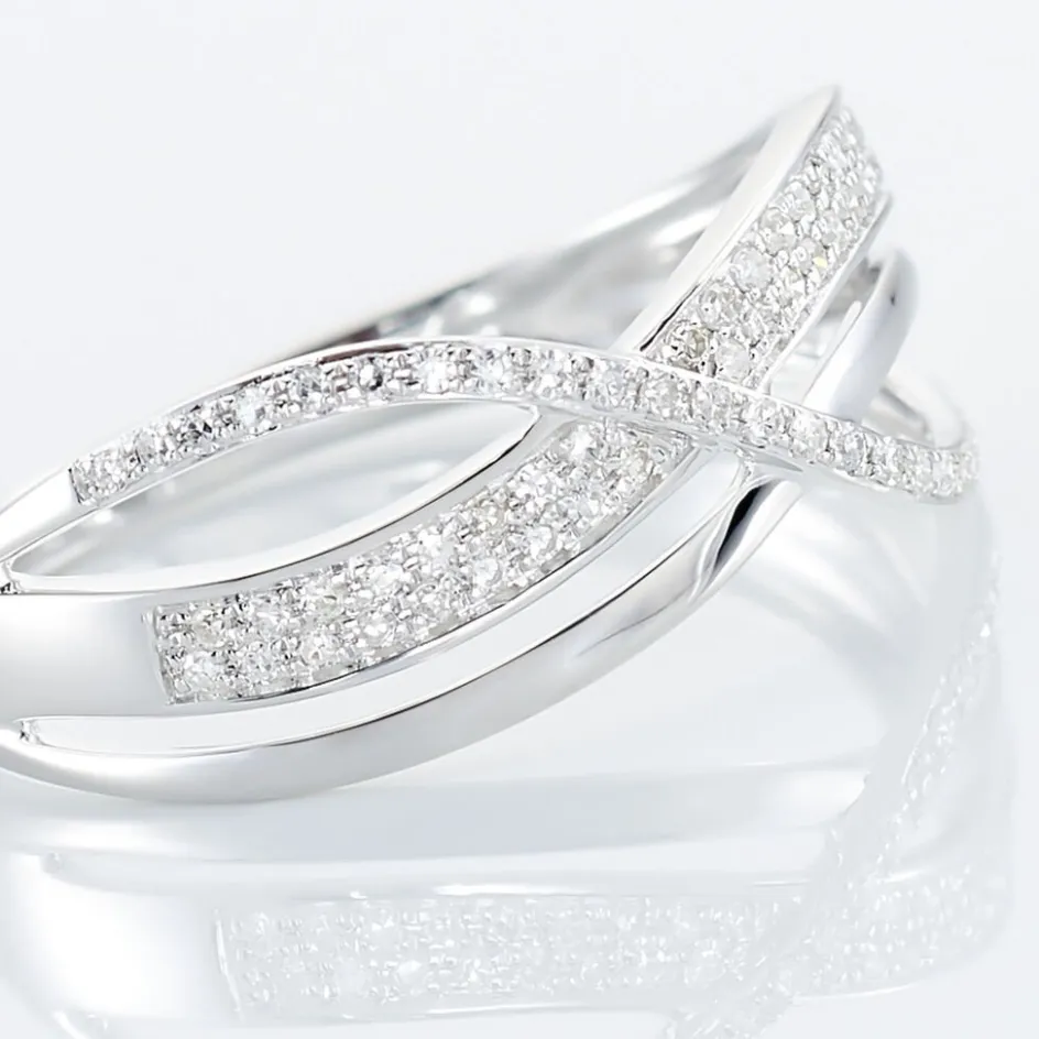 Bague Or Blanc 375/1000 Diamants Blancs Croises
