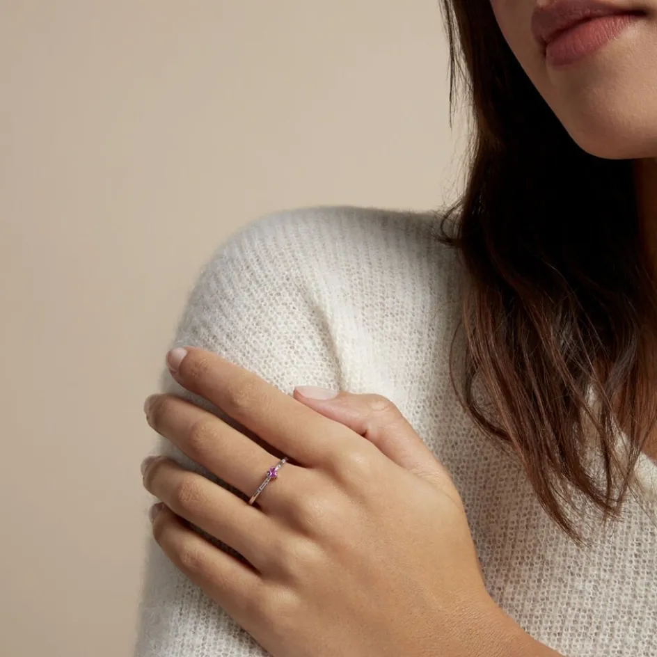 Bague Solitaire Argent Blanc 925/1000 Coeur Oxydes De Zirconium Roses