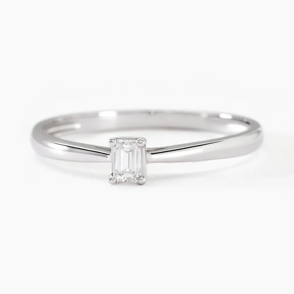 Solitaire Or Blanc 375/1000 Solitaire Taille Emeraude Diamant 0.1ct Serti Griffes