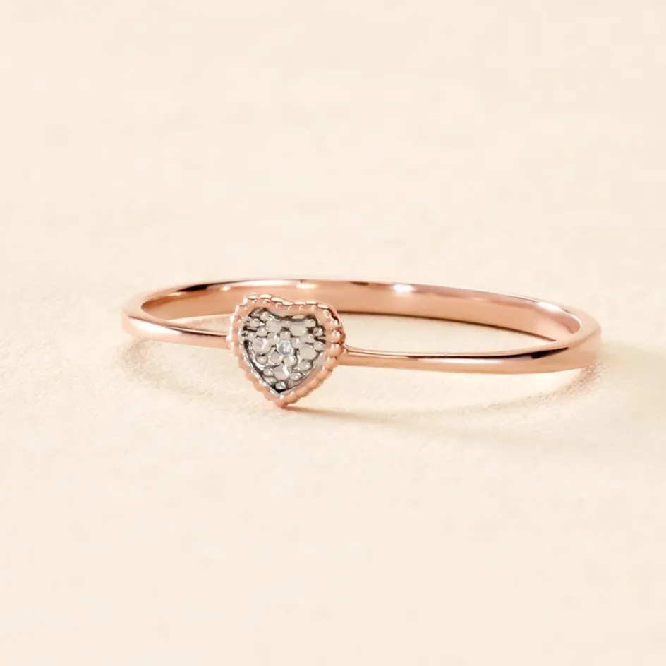 Bague Or Rose 375/1000 C艙ur Effet Perlé Et Diamant