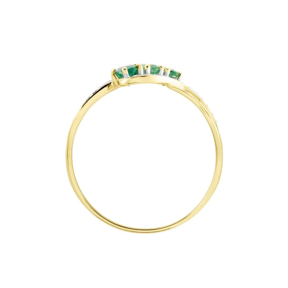 Bague Or Jaune 375/1000 Trilogie Emeraude Pavage Diamants