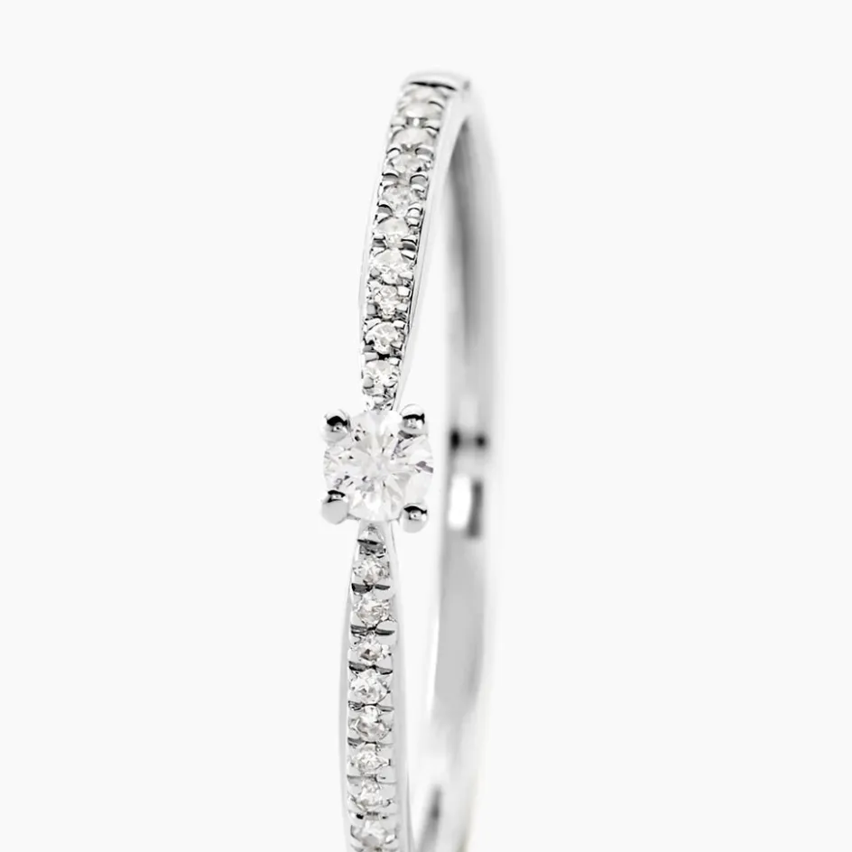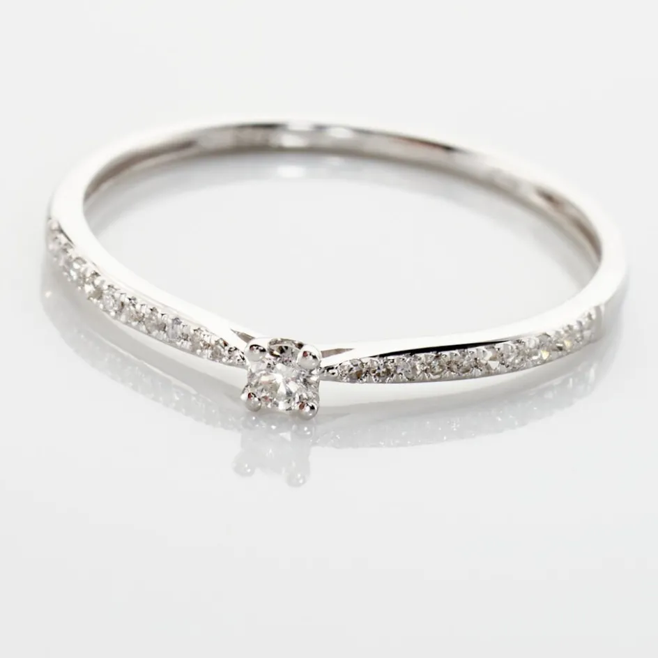 Solitaire Or Blanc 375/1000 Diamant Central 0.05cts Serti Griffes Accompagnes Diamants