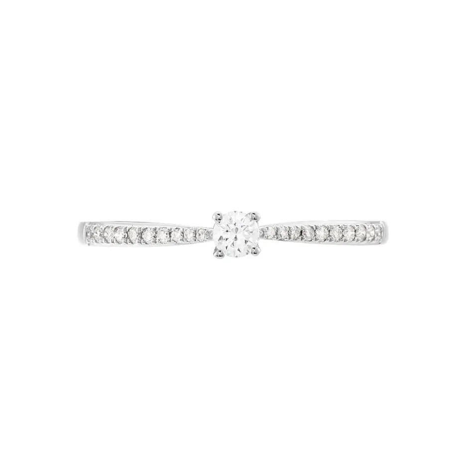Solitaire Or Blanc 750/1000 Diamant Central 0.10cts Serti Griffes Accompagnes Diamants