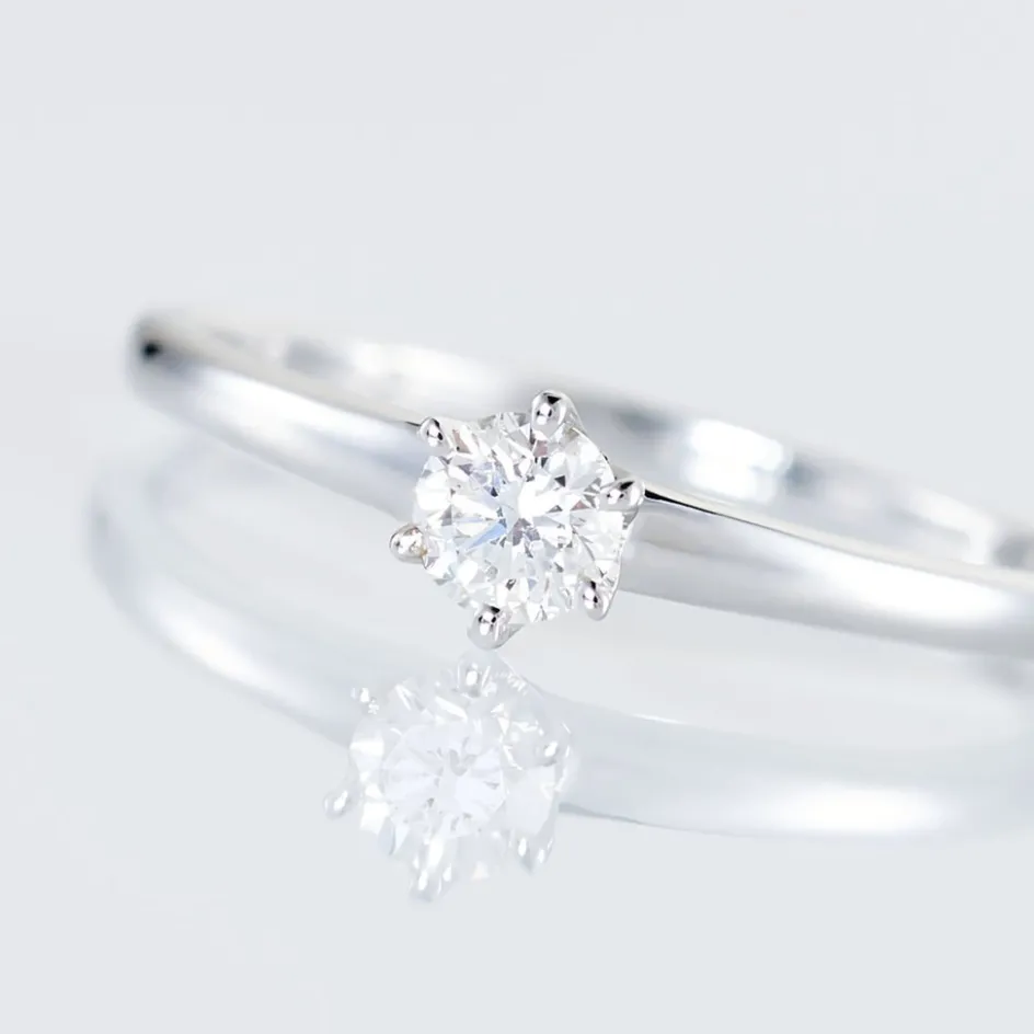 Solitaire Or Blanc 750/1000 Diamant Central 0.20cts Serti 6 Griffes