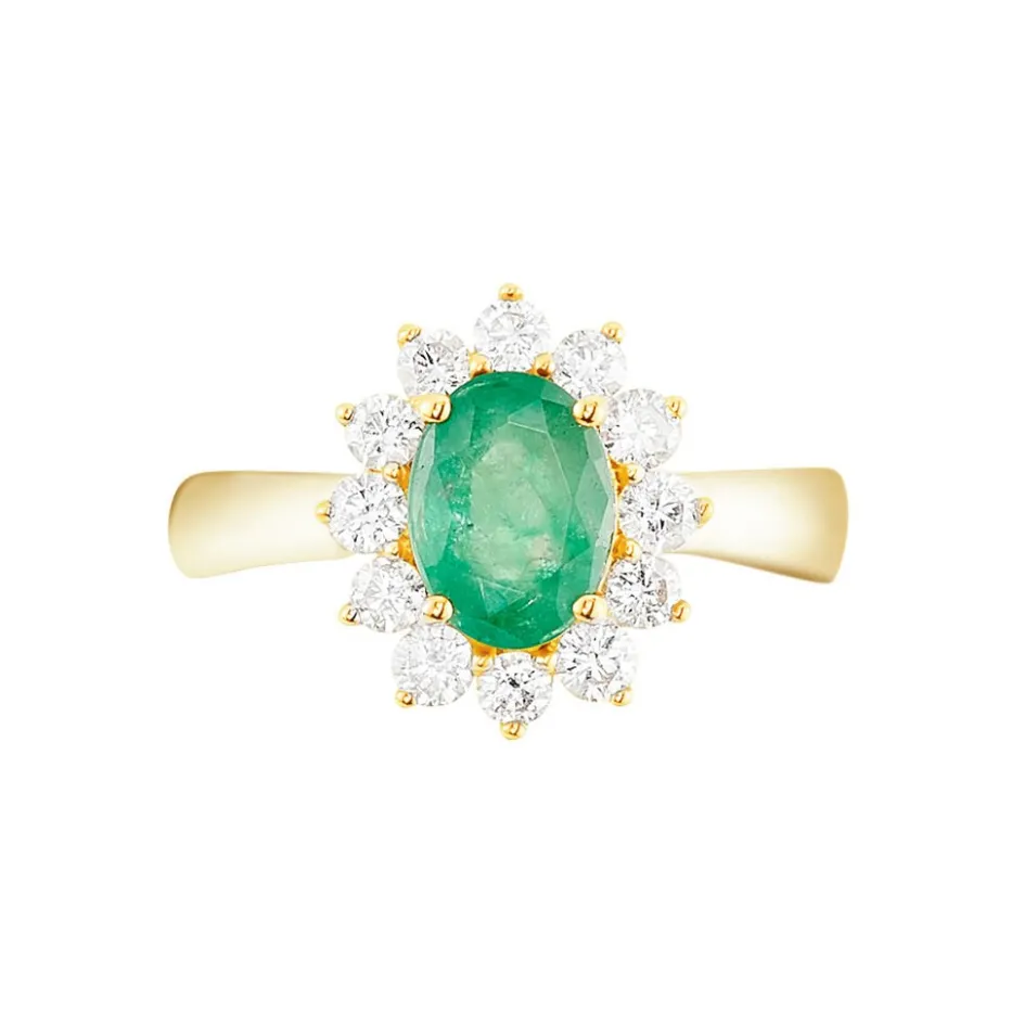 Bague Or Jaune 375/1000 Emeraude Simple Entourage Diamants Gm