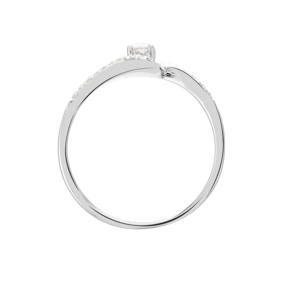 Bague Or Blanc 375/1000 Diamant 0.1cts Central Accompagne Diamants Effet Vrille Mm