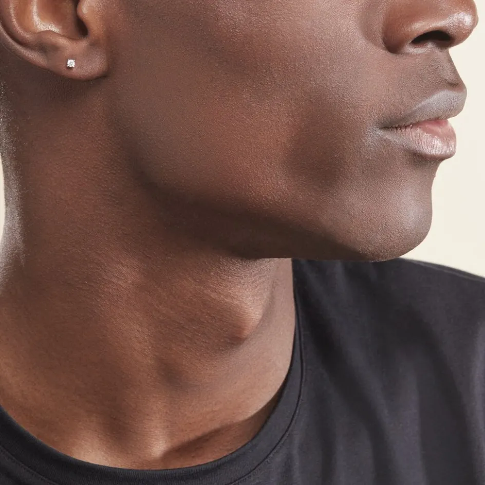 Boucles D’oreilles Or Blanc 375/1000 Puces Diamants 0.15cts Serti 4 Griffes