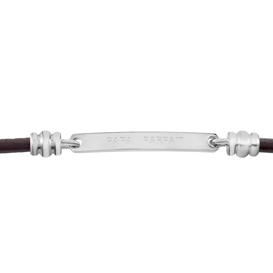 Bracelet Acier Inoxydable Blanc Cuir De Vache Marron Message Best Dad 21cm