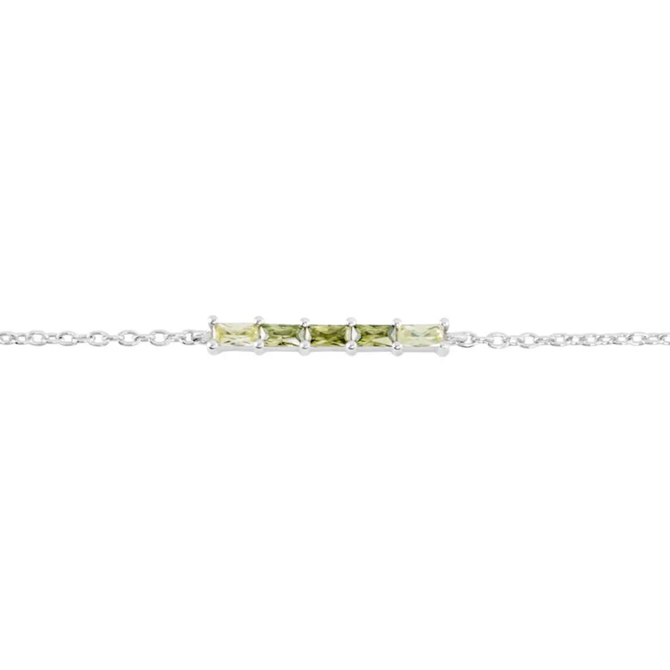 Bracelet Argent 925/1000 Barrette Baguettes Oxydes De Zirconium Nuances Vert Maille Forçat 19cm