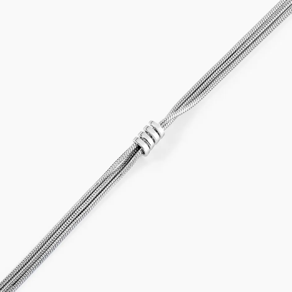 Bracelet Argent Blanc 925/1000 Noeud Torsade Triple Maille Serpent 18.5cm