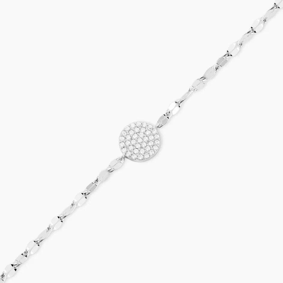 Bracelet Argent Blanc 925/1000 Pastille Pavage Oxydes De Zirconium Maille Lumina 19cm