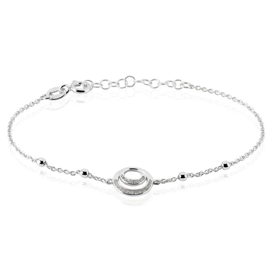 Bracelet Argent Blanc 925/1000 Double Cercles Glitter Argent Maille Boules 18.5cm