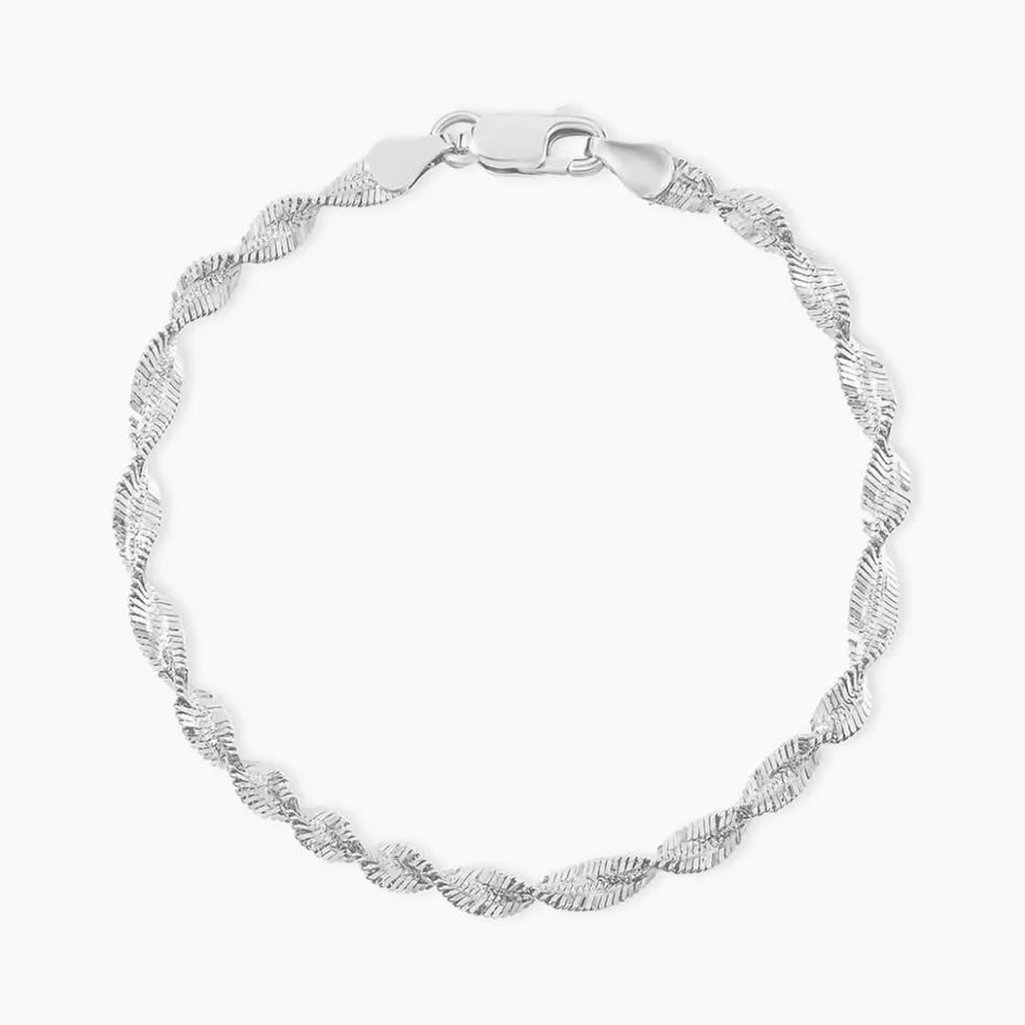 Bracelet Argent Blanc 925/1000 Maille Torsade Diamantee Largeur 3.6mm 18cm