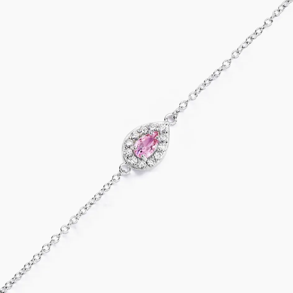 Bracelet Court Argent Blanc 925/1000 Goutte Rose Entourage Oxydes De Zirconium Maille Forcat Serti Griffes 16cm