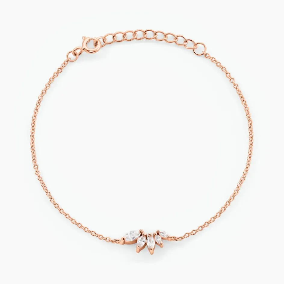 Bracelet Argent Rose 925/1000 Navettes Oxydes De Zirconium Serti Griffes Maille Forçat 16+3cm