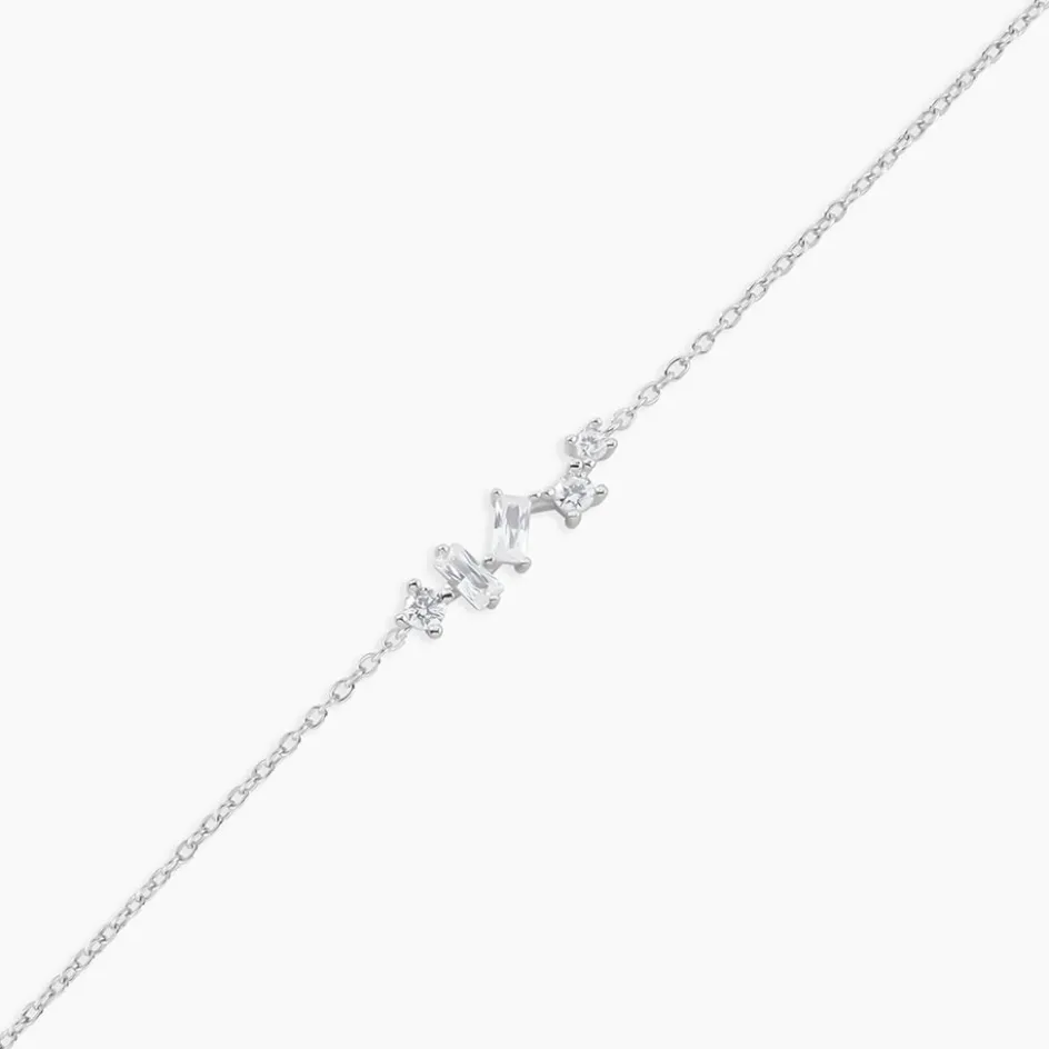 Bracelet Argent Blanc 925/1000 Oxyde De Zirconium Taille Baguette Accompagne Oxydes Maille Forcat 16+3Cm