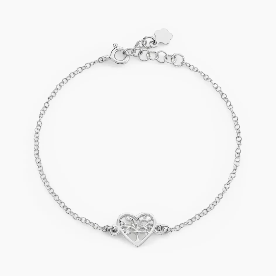 Bracelet Argent Blanc 925/1000 Arbre De Vie Coeur Maille Forcat 16cm