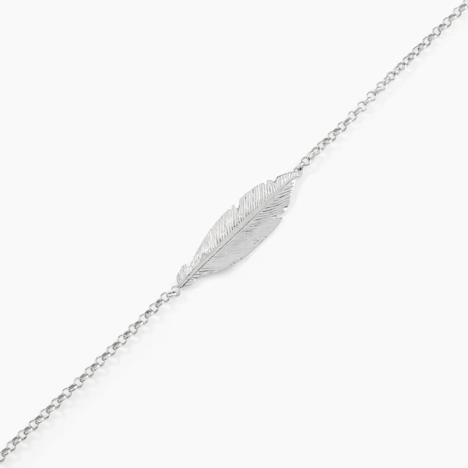 Bracelet Argent Blanc 925/1000 Plume Maille Forcat 19cm